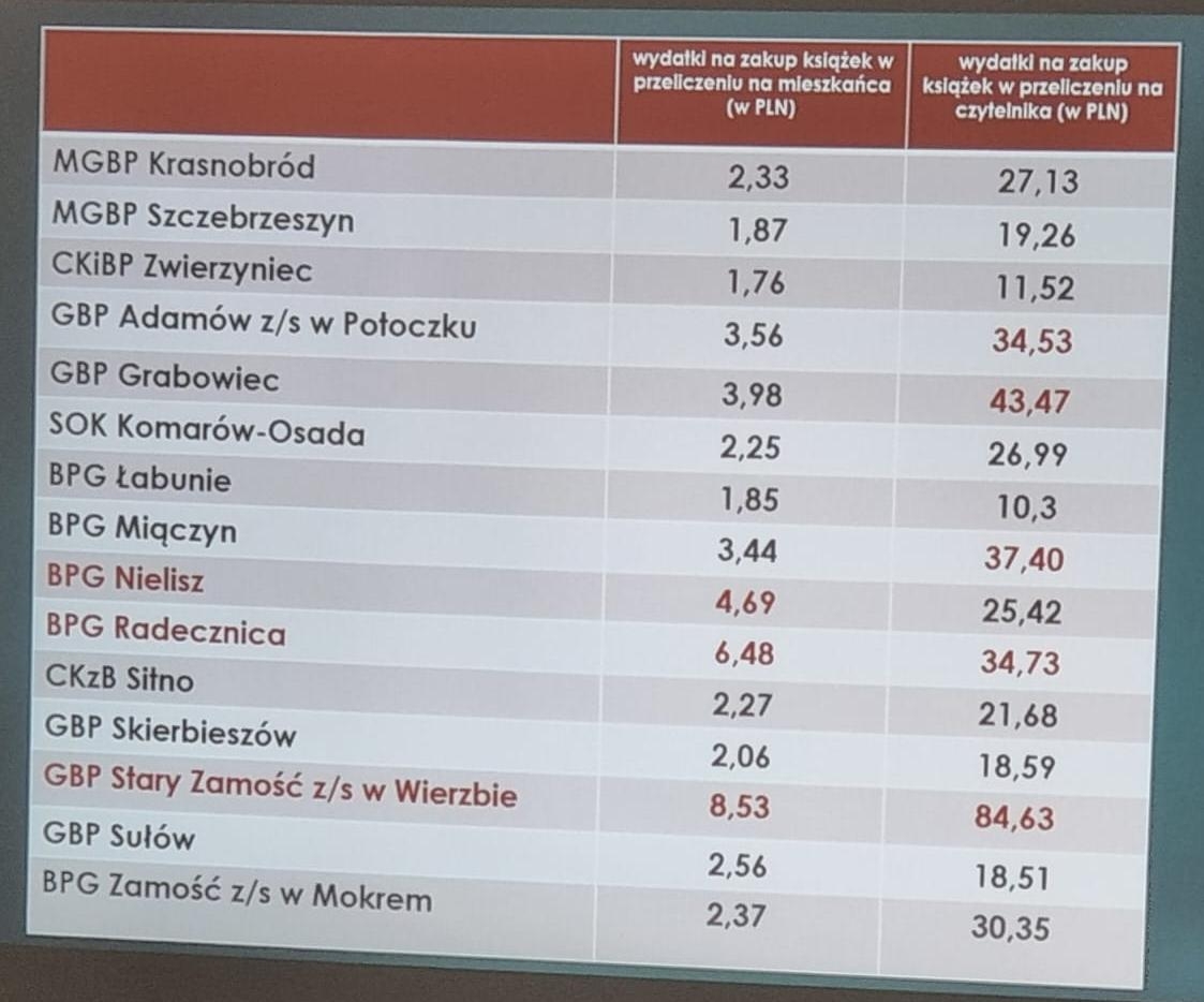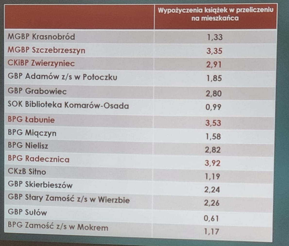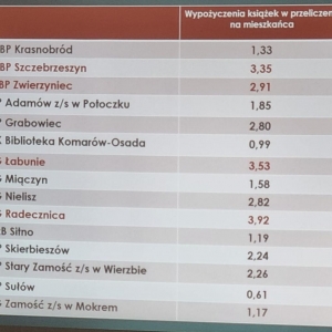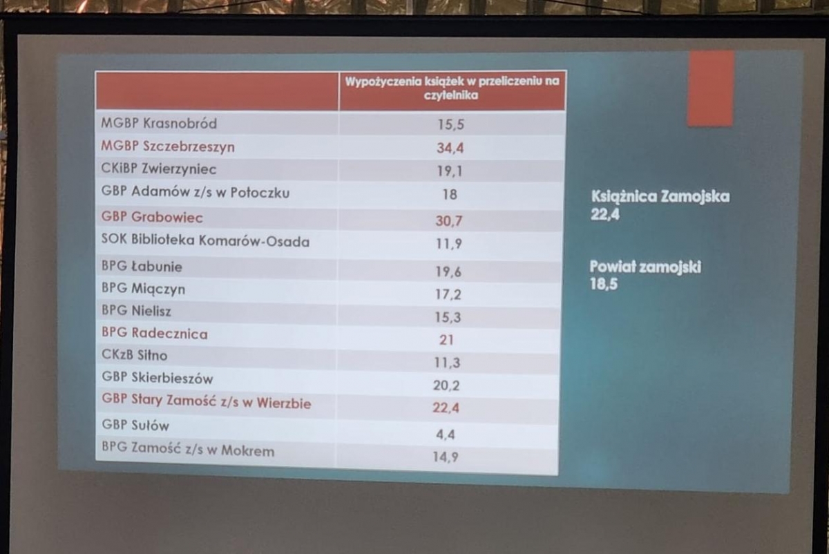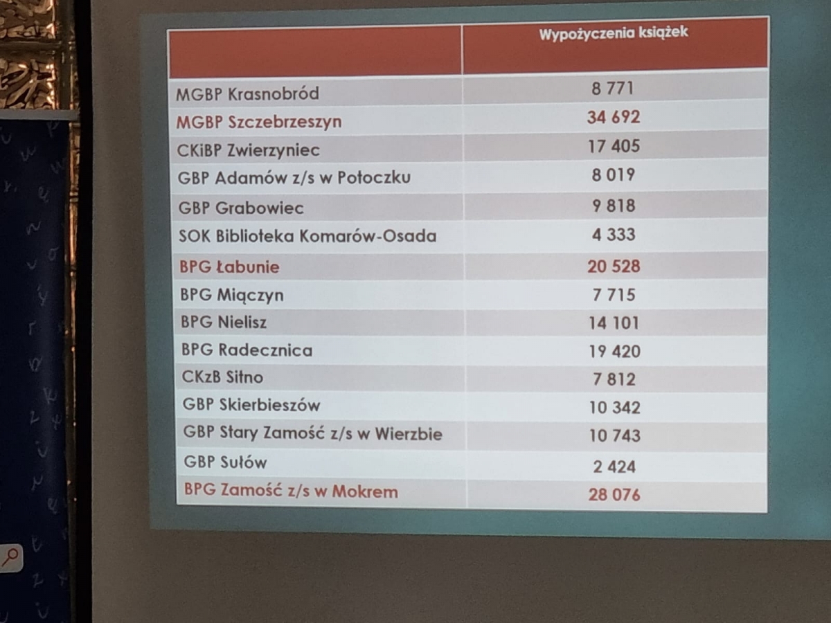 w Książnicy Zamojskiej, nasza Biblioteka jest liderem w kwestii wielu aspektów, szczególnie w zakresie wypożyczania książek w przeliczeniu