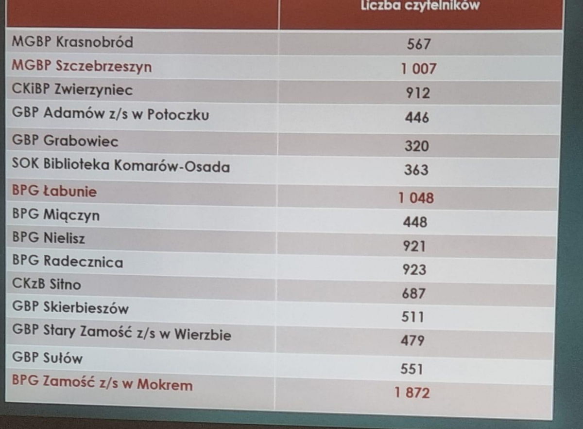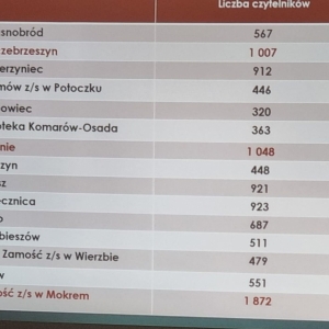 Na tle danych liczbowych prezentowanych podczas podsumowania działalności bibliotek powiatu zamojskiego za 2025 r, w dniu 11 marca br.